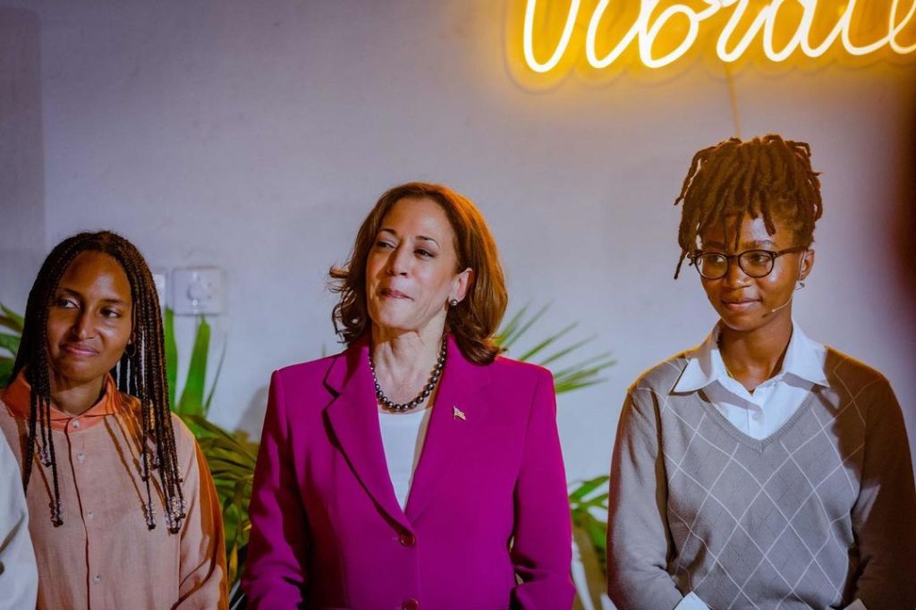 Hosted at the Vibrate Spaces inside Freedom Skate Park, the Spotify event was a chance for Kamala Harris and other visiting U.S celebrities including Idris Elba and Sheryl Lee Ralph to interact with artists in Accra’s budding music and creative arts scene.